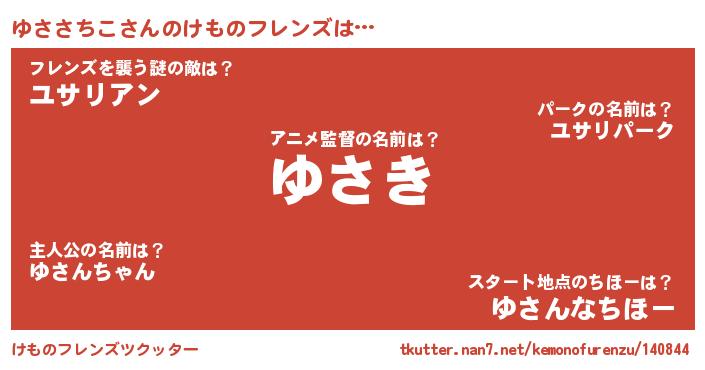 | ヒーロー風カッコイイあだ名 | 『幻影騎士ユサ』『慈愛の使者ゆささちこ』 |