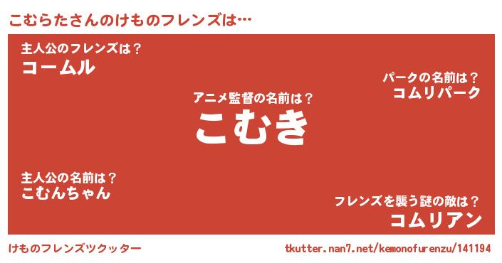 | 意味不明あだ名 | 『なめこ科こむらた属』『自称こむらた』 |