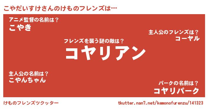 | 男性向けラノベタイトル風あだ名 | 『おまえをオタクにしてやるから、俺をこやだいすけにしてくれ! 』 |