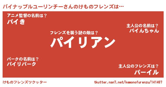| 男性向けラノベタイトル風あだ名 | 『うちのパイナップルユーリンチーが世界を掌握している!』 |