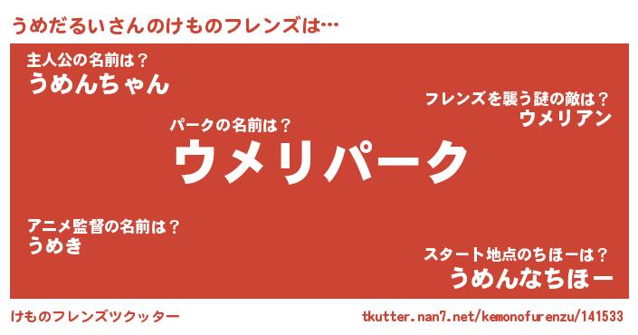 | 意味不明あだ名 | 『自称うめだるい』『ペロリンうめだるい』 |
