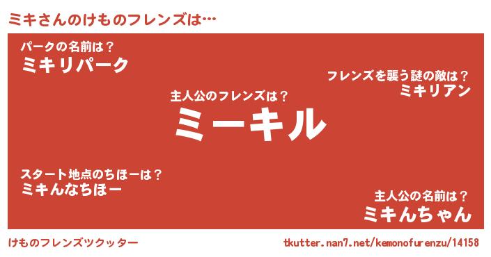 | 意味不明あだ名 | 『永久保存ミキ』『自称ミキ』 |