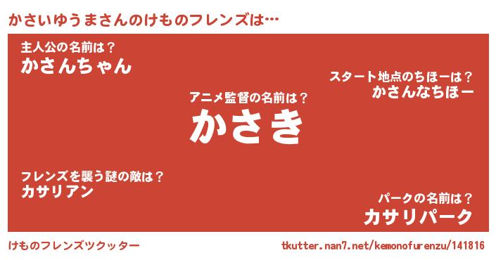 | ヒーロー風カッコイイあだ名 | 『天弓騎士カサ』『スーパーカサイユウマ』 |