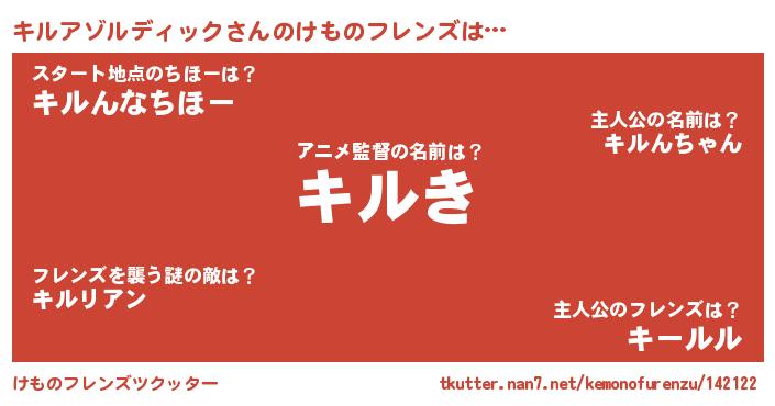 | ピコ太郎風あだ名 | 『キル次郎』『ピキ二郎』『ピコキ郎』 |