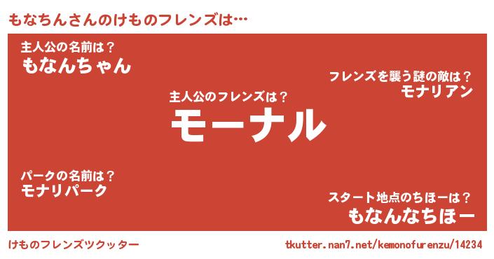 | ヒーロー風カッコイイあだ名 | 『ネオモナチン』『スーパーモナチン』 |