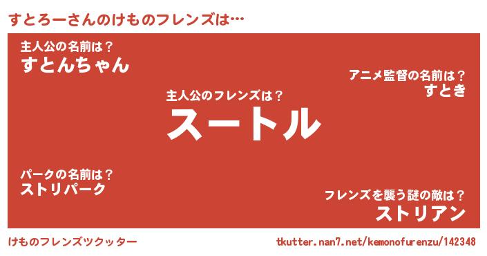 | ヘコむあだ名 | 『すとろー(遠い目)』『すとっふぃ~』 |