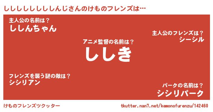 | 胡散臭い通販商品みたいなあだ名 | 『信頼と実績のサプリメント…その名も「ししししししししんじ」』 |