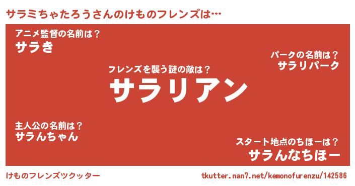 | 意味不明あだ名 | 『ヨモギ科サラミちゃたろう属』 |