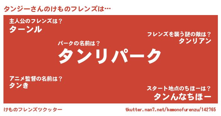 | 意味不明あだ名 | 『自称タンジー』『永久保存タンジー』 |