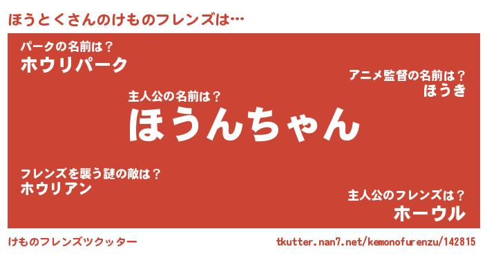 | ファンタジー風あだ名 | 『ホウフェル』『ゼホウトゥ』 |