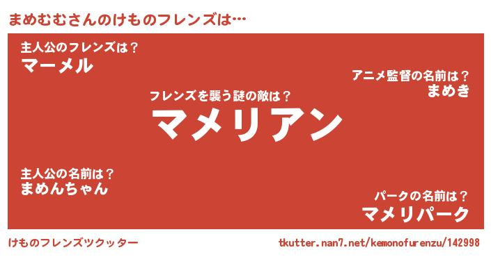 | 男性向けラノベタイトル風あだ名 | 『この素晴らしい世界にまめむむを!』 |
