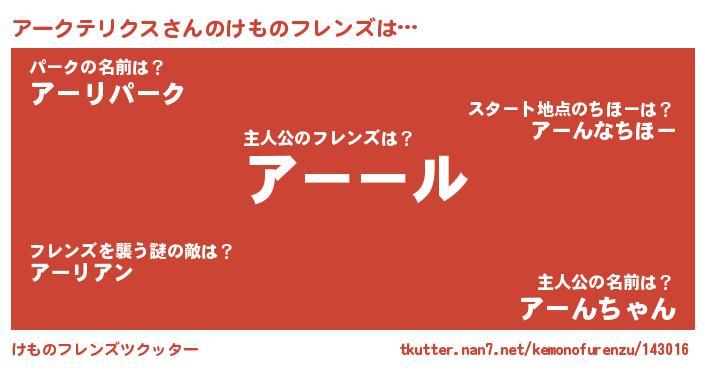 | ヘコむあだ名 | 『アークテリクス(遠い目)』『アーにゅー』 |