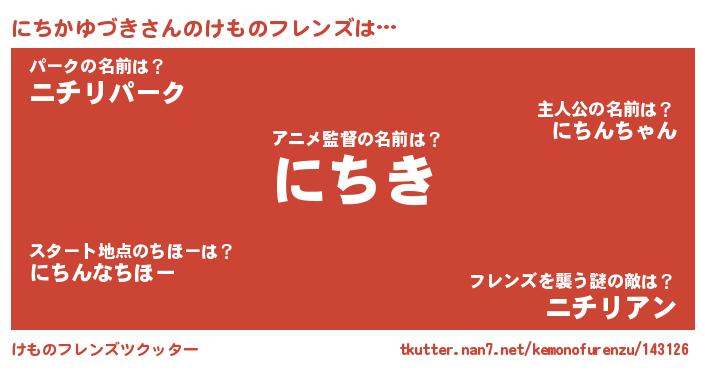 | ポケモン風あだ名 | 『ニチゴンZ』『ヒニチカユヅキ』 |