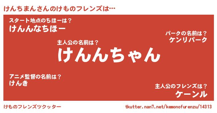 | 意味不明あだ名 | 『ペロリンけんちまん』『自称けんちまん』 |