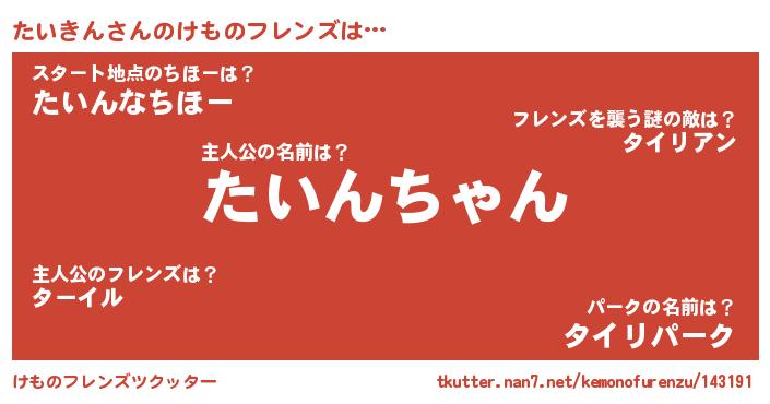 | 2回繰り返すあだ名 | 『たいたい』『たぷたぷ』『たたいい』 |