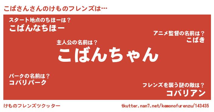 | ファンタジー風あだ名 | 『コバフェル』『エターナルコバサンー』 |