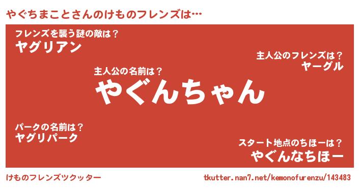 | ヒーロー風カッコイイあだ名 | 『スーパーヤグチマコト』『仮面ヤグダー』 |