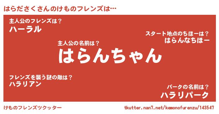 | ファンタジー風あだ名 | 『ハラフェル』『ハラディッシュ』 |