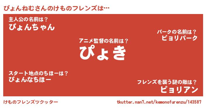 | 料理風あだ名 | 『ポテトとぴょんねむのキッシュ☆』 |