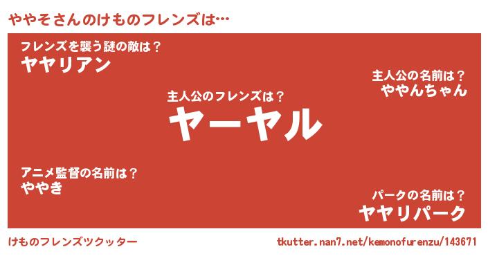 | ヘコむあだ名 | 『ややそ(遠い目)』『ややっふぃ~』 |