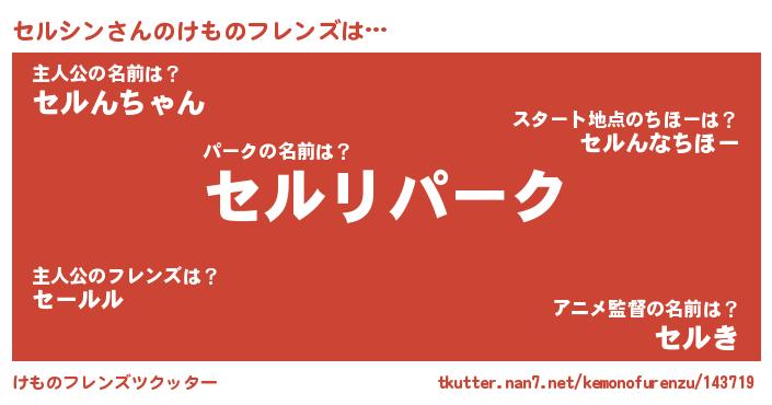 | 意味不明あだ名 | 『自称セルシン』『ペロリンセルシン』 |