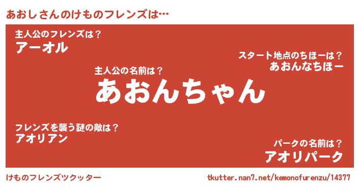 | ポケモン風あだ名 | 『アオチュウ』『ゼニアオ』 |