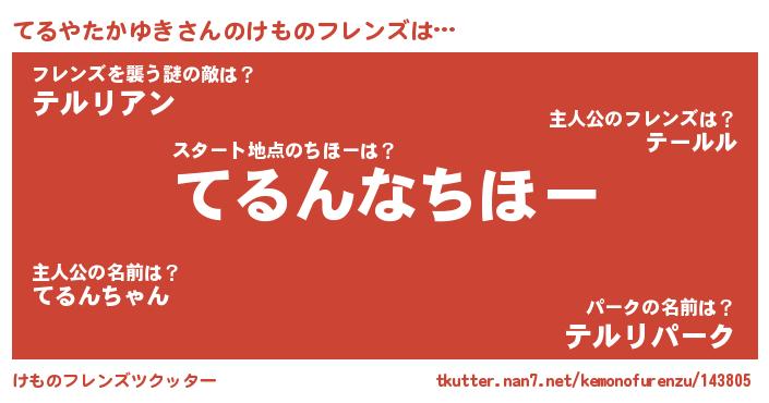 | ポケモン風あだ名 | 『テルキング』『テルヤダネ』 |