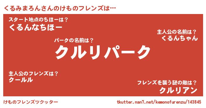 | 可愛いあだ名 | 『くーみん』『くるうちぇる』 |