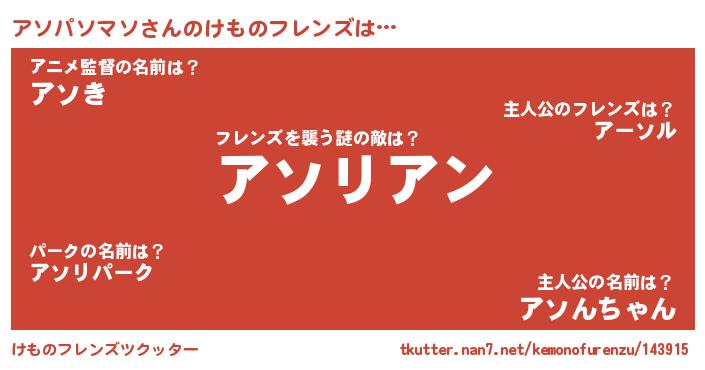 | ヘコむあだ名 | 『アソを』『アソっふぃ~』 |