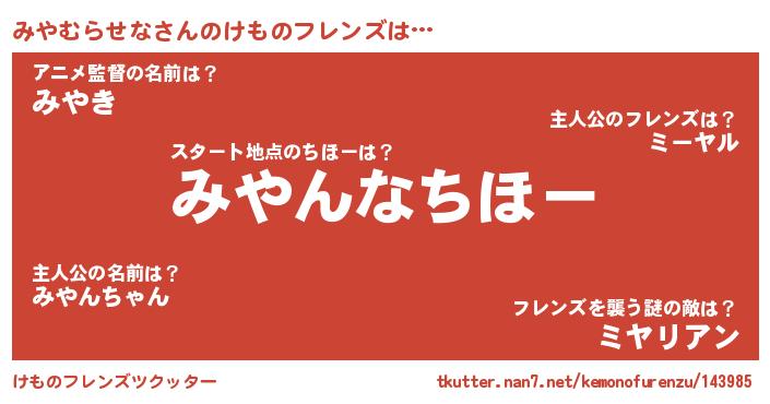 | 意味不明あだ名 | 『みやむらせなフォーエバー』 |