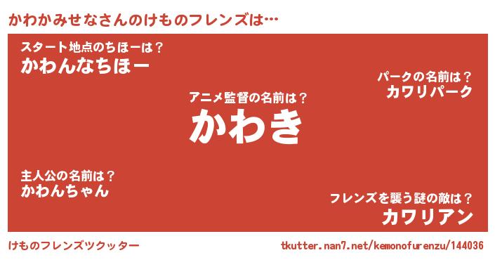 | 胡散臭い通販商品みたいなあだ名 | 『信頼と実績のサプリメント…その名も「かわかみせな」』 |