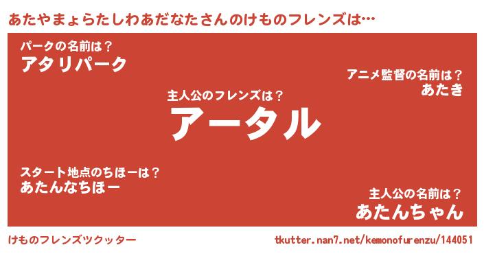 | ヘコむあだ名 | 『あたやまょらたしわあだなた(遠い目)』 |