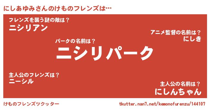 | 意味不明あだ名 | 『自称にしあゆみ』『ペロリンにしあゆみ』 |