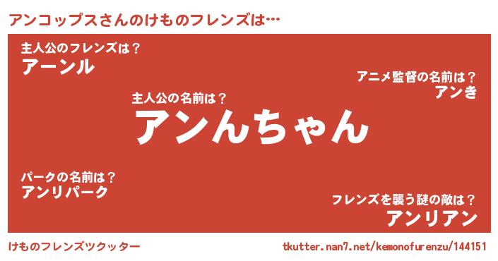 | 男性向けラノベタイトル風あだ名 | 『アンコップスに滅ぼされるだけの簡単なお仕事です』 |