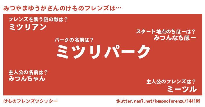 | 意味不明あだ名 | 『自称みつやまゆうか』 |