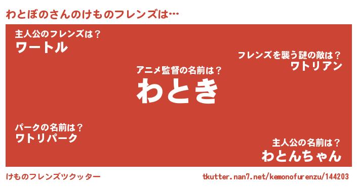 | 欧米人風あだ名 | 『ウサインわとぼの』『マイケルわとぼの』 |