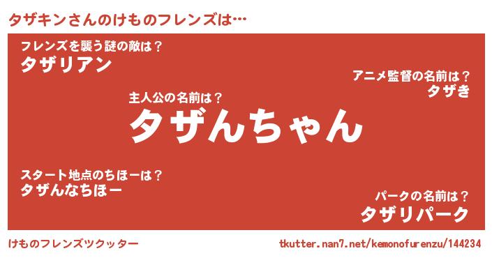 | 意味不明あだ名 | 『ペロリンタザキン』『自称タザキン』 |