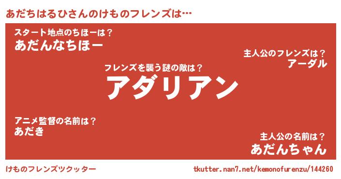 | 男性向けラノベタイトル風あだ名 | 『あだちはるひに滅ぼされるだけの簡単なお仕事です』 |