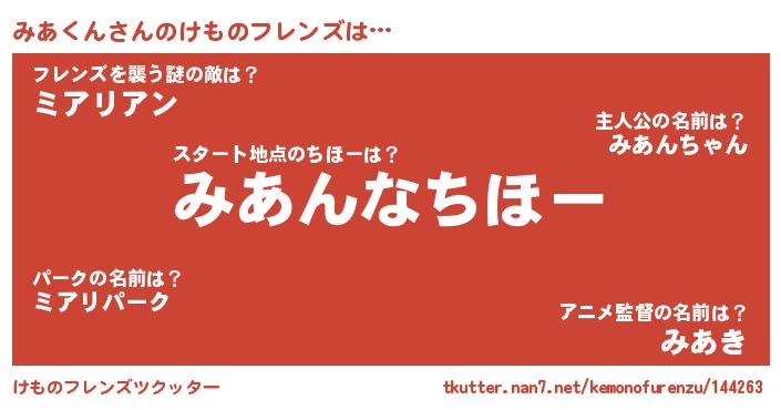 | ヒーロー風カッコイイあだ名 | 『ウルトラみあくんマン』『魔戒騎士ミア』 |