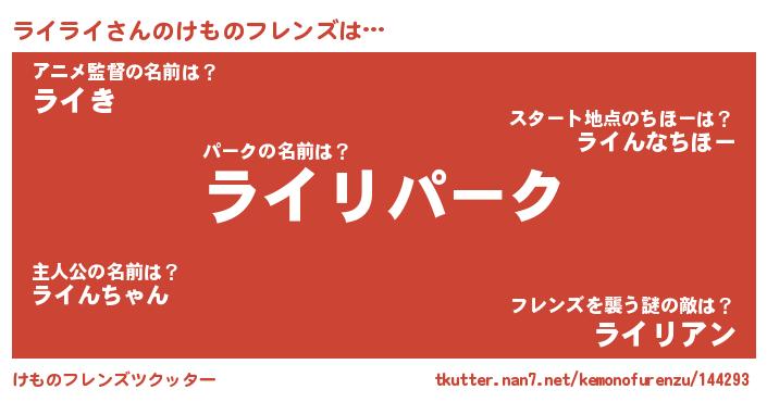 | ヘコむあだ名 | 『ライぷりん』『豆乳』『ライふぇ~』 |