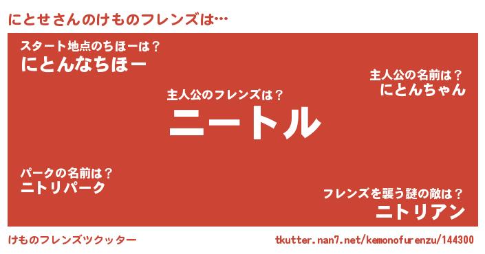 | ヒーロー風カッコイイあだ名 | 『ネオニトセ』『ウルトラにとせマン』 |
