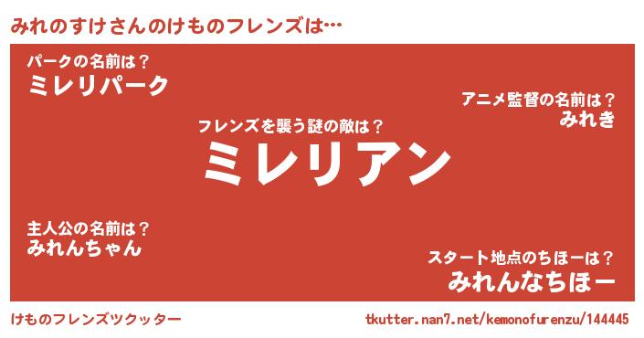 | 意味不明あだ名 | 『住所不定無職みれのすけ(8歳)』 |