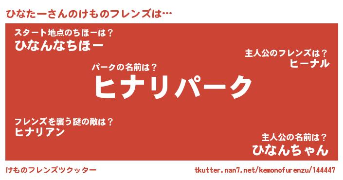 | ファンタジー風あだ名 | 『ゼヒナトゥ』『エターナルヒナターー』 |