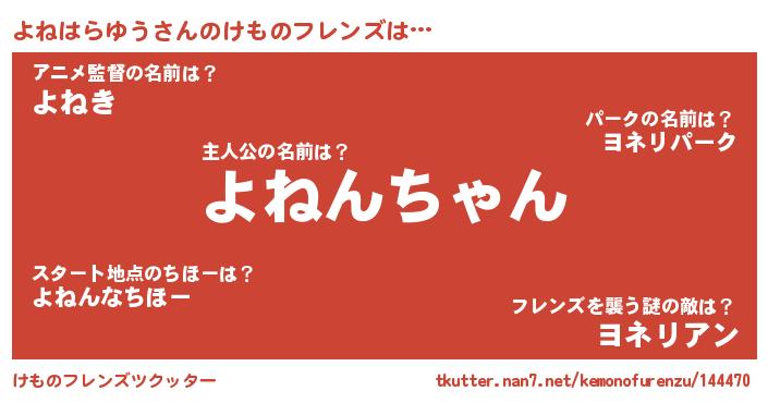 | 2回繰り返すあだ名 | 『よねよね』『だるんだるん』 |