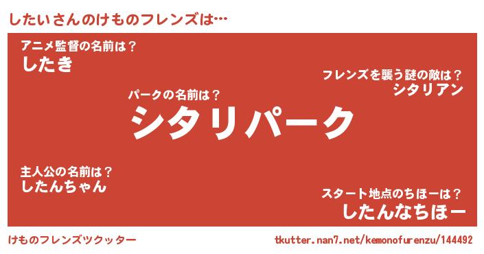 | ヒーロー風カッコイイあだ名 | 『究極戦士シタイ』『魔戒騎士シタ』 |