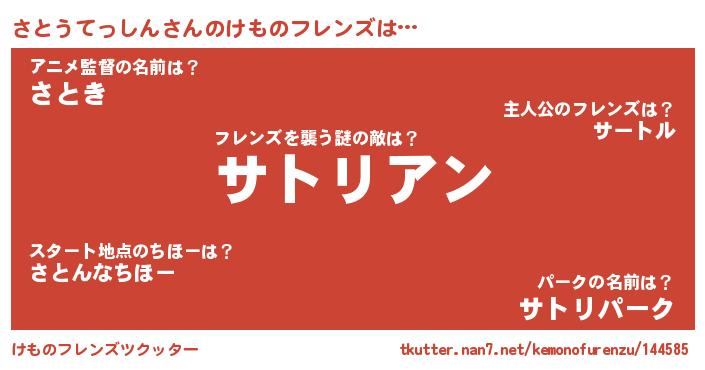| 意味不明あだ名 | 『住所不定無職さとうてっしん(53歳)』 |