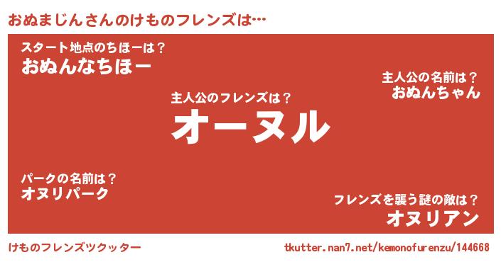 | ヒーロー風カッコイイあだ名 | 『ネオオヌマジン』『仮面オヌダー』 |