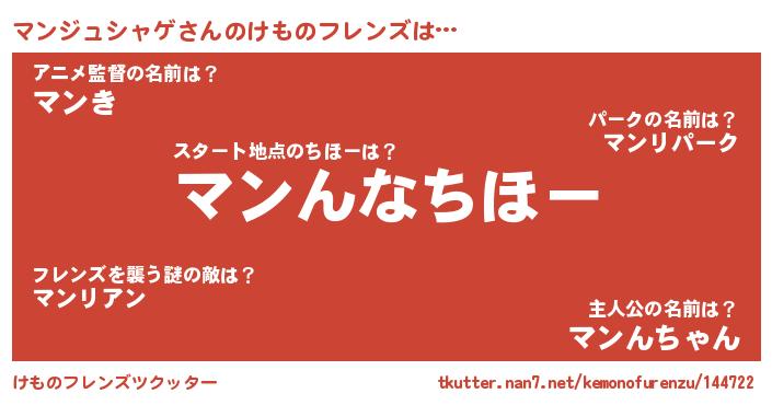 | 料理風あだ名 | 『マンジュシャゲごはん』 |