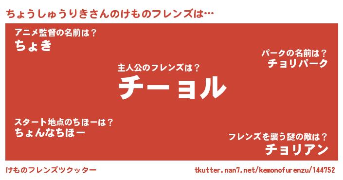 | ヘコむあだ名 | 『ちょうしゅうりき(爆)』『ちょっぺ』 |