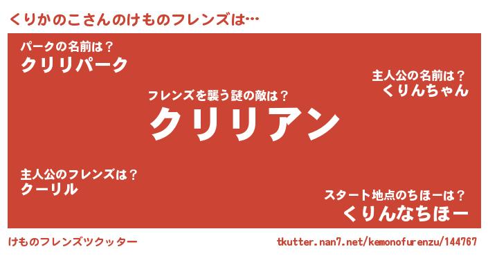 | ヘコむあだ名 | 『なまこ酢』『くりにー』『くりお』 |